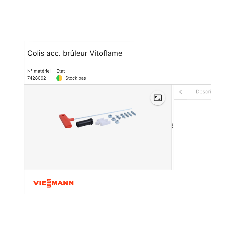 Dans cette fiche produit Viessmannexpress vous trouverez le détail de la pièce détachée pour chaudière Viessmann Colis acc. brûleur Vitoflame faisant partie de la famille Colis et correspondant à la référence du fabricant Viessmann n° 7428062